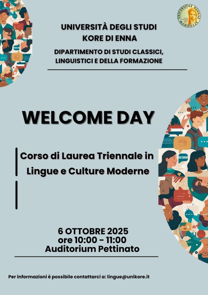 Lunedì 6 ottobre 2025, dalle 10:00 alle 11:00, si svolgerà il Welcome Day del Corso di Laurea Triennale in Lingue e Culture Moderne presso l’Auditorium Pettinato.